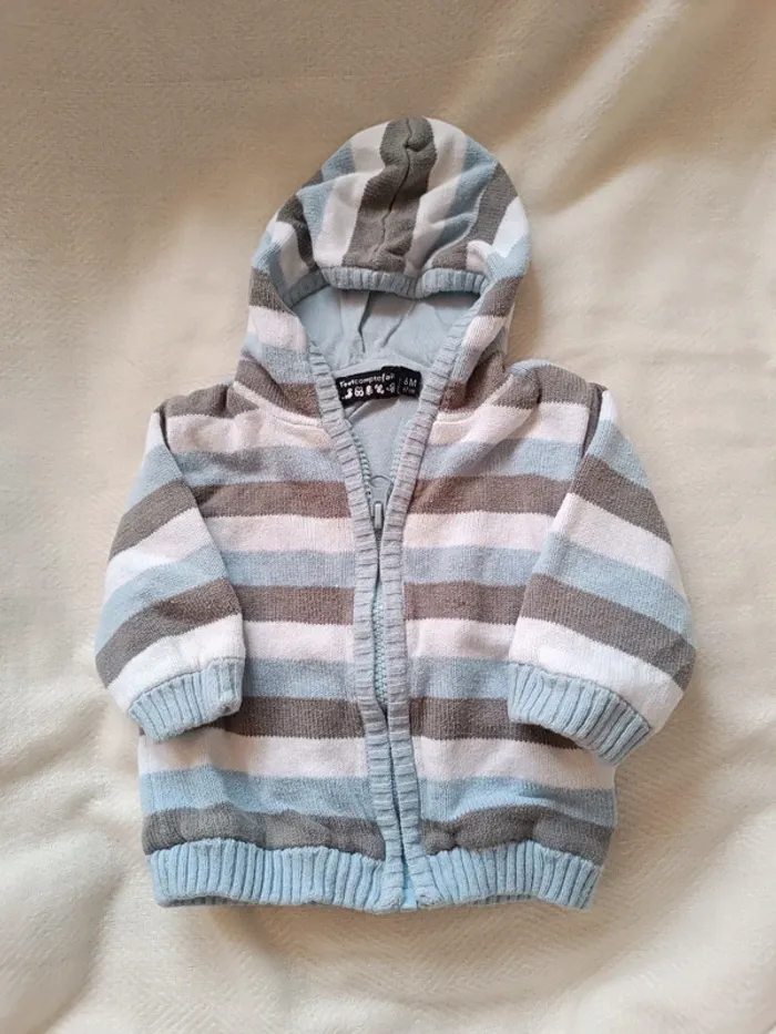 🎀 veste a rayures bleu blanc gris taille 6 mois 🎀 - photo numéro 1