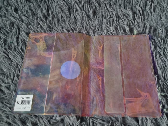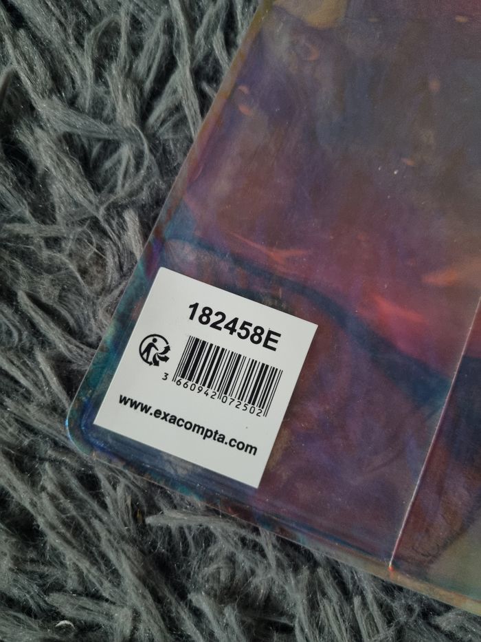 Protège cahier transparent multicolore, 18x13cm,marque Exacompta, avec marque page et pochette pour ranger le téléphone (possible d'utiliser le téléphone à travers le protège cahier).