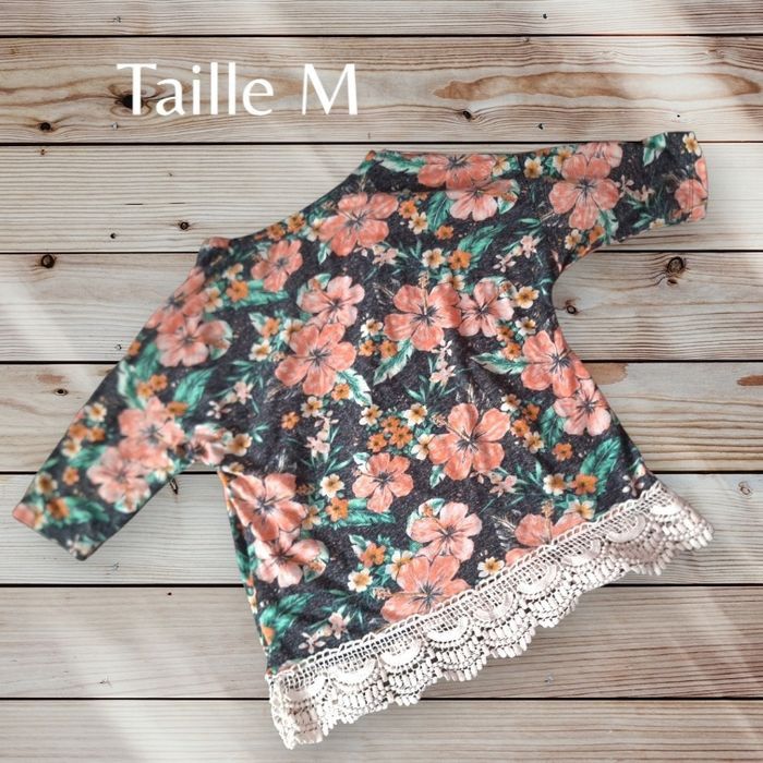 T-shirt fleuri avec dentelles - photo numéro 1