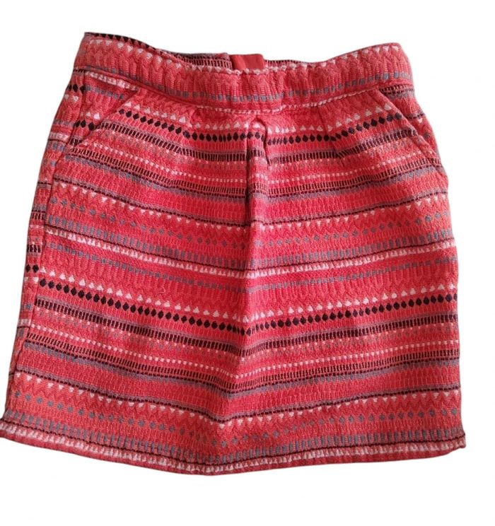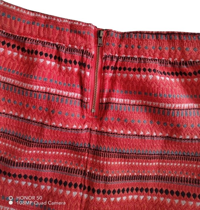 🪧 𝔻𝕖𝕤𝕔𝕣𝕚𝕡𝕥𝕚𝕠𝕟 : Jupe courte avec des mots géométriques. Fermeture éclair à l'arrière et taille ajustable par élastique intérieur.