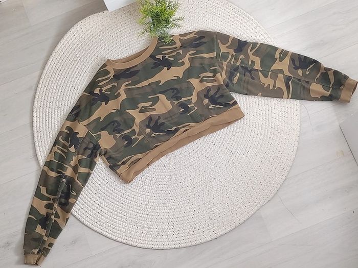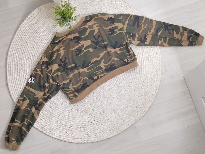 🪧 𝔻𝕖𝕤𝕔𝕣𝕚𝕡𝕥𝕚𝕠𝕟 : Pull col rond avec motif militaire.