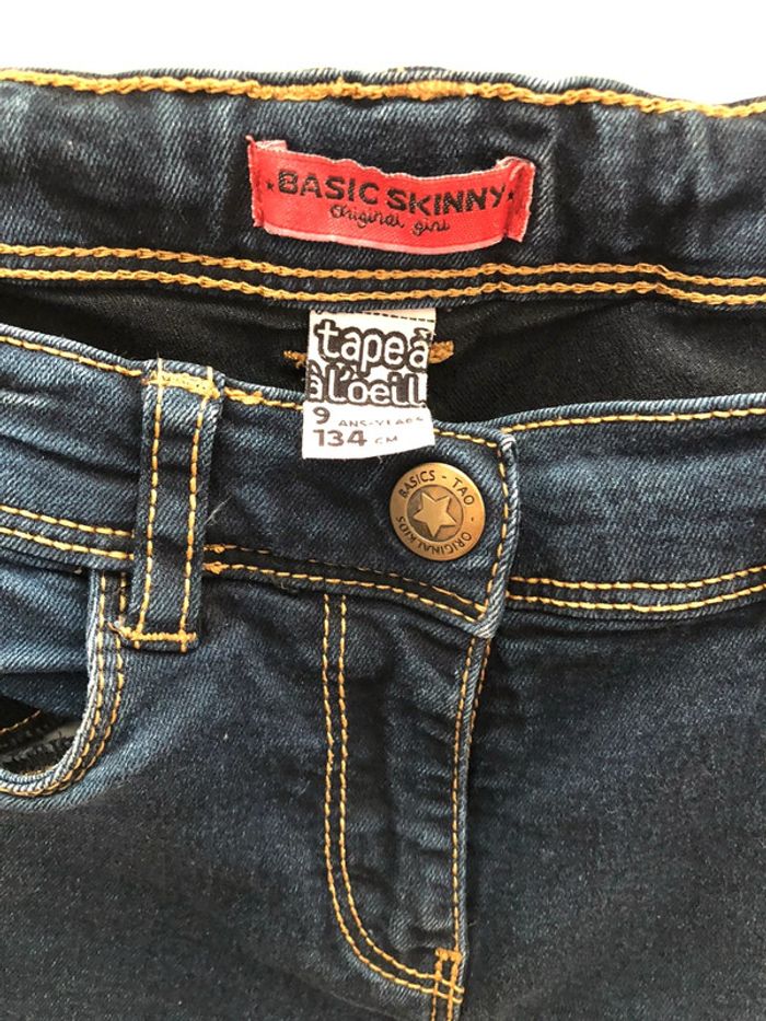 Pantalon skinny en 9 ans de tape à l’œil. En bon état. 74% coton, 24% polyester, 2% élasthanne.
