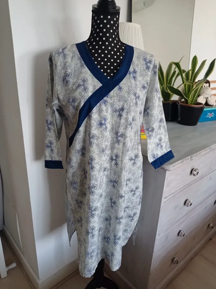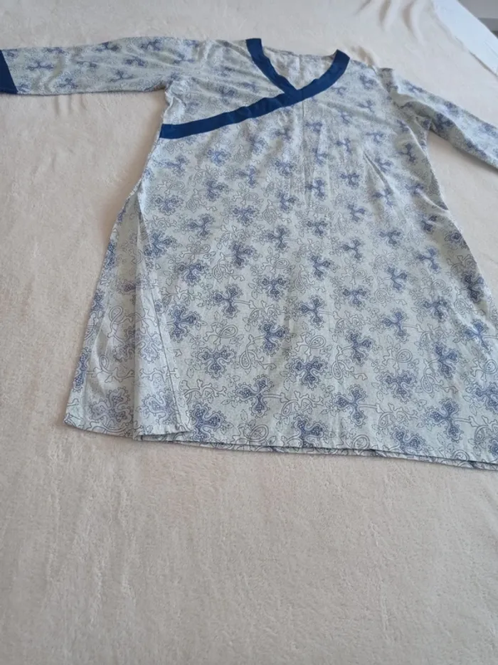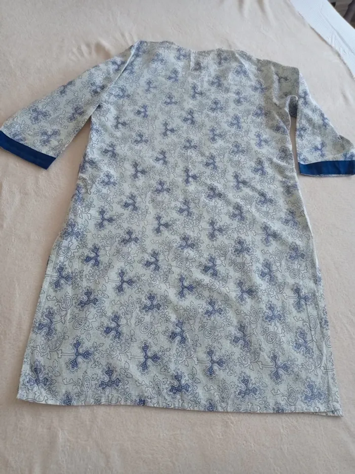 Sortie de plage/ Tunique /Chemise de nuit ( a vous de choisir comment le porter 🤭 En bon voir très bon état, petite tâche et un fil tiré, merci de bien regarder/ agrandir les photos. Manches 3quart, fentes assez profondes sur les côtés. Taille : XL (42) Mais je dirais plutôt du 40. Mesures approximatives Longueur: 93cm Manche: 45cm Aisselle a aisselle: 52cm Épaule à épaule: 40cm Aucune étiquette avec la composition. En coton. Autres articles en #dresarl #dresarxl 😉 #sortiedeplage #tunique #chemisedenuit #robemanche3quart