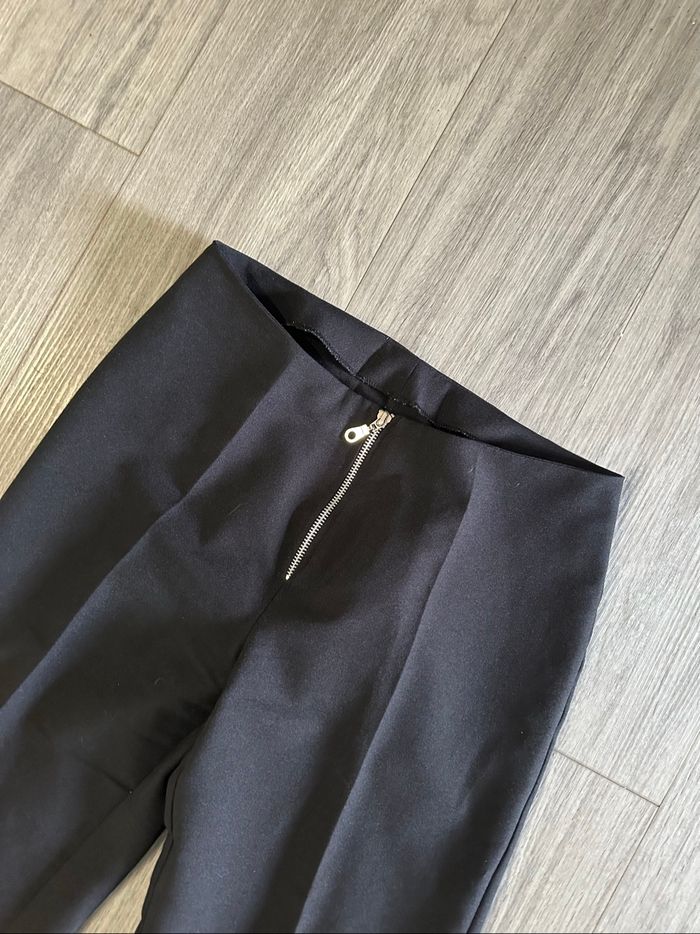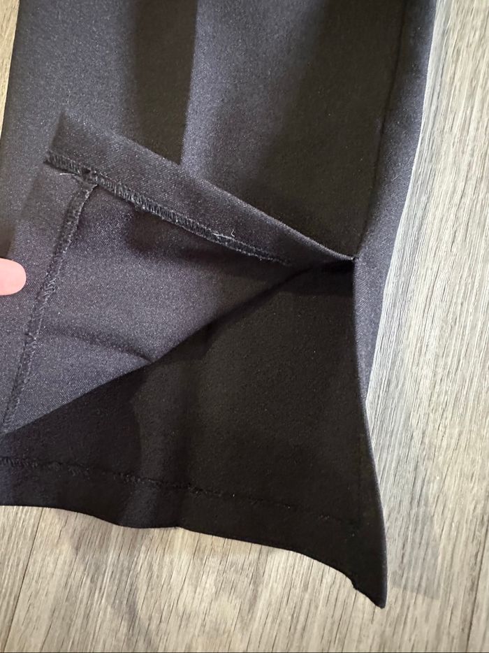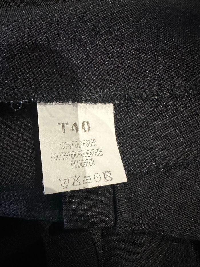 Pantalon capri - Excellent état - Taille 36/38 équivalent S/M Dimensions en bas de l’annonce - Couleur noir - Zip argenté à l’avant - Légèrement fendu sur le bas - Tissus stretch - Vintage, Y2K années 2000’ - 100% polyester Dimensions: - 37cm à la taille - 60cm entre jambe - 84cm de long L’étiquette indique une taille 40 mais les dimensions un 36/38