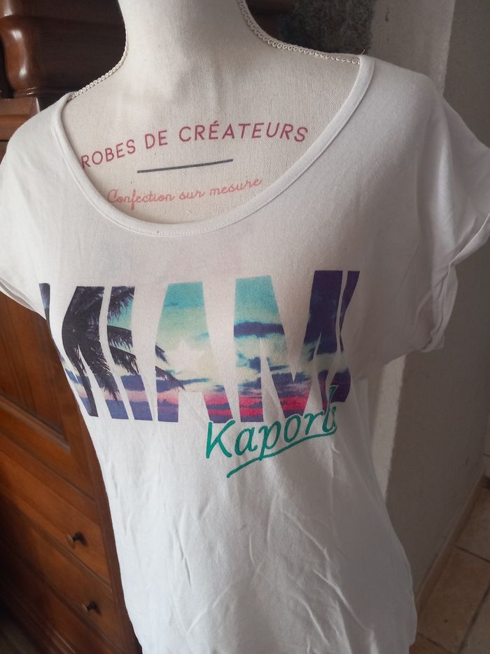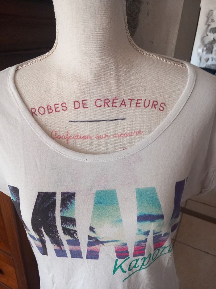Tee-shirt longueur 60 cm. Aisselle à aisselle 48 cm. Coton polyester