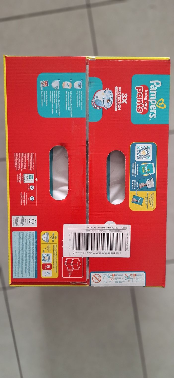 Bonjour Je vend un paquets de couches pampers mega pack taille 5 pants n3uve De 11 a 17kg 86 couches Dans son emballage d'origine