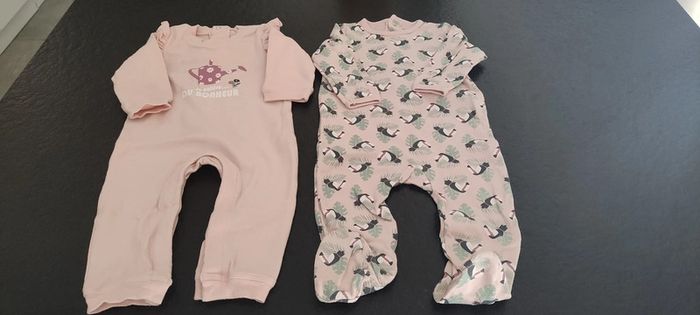 Lot 2 pyjamas légers bébé fille une pièce Gémo 12mois - photo numéro 1