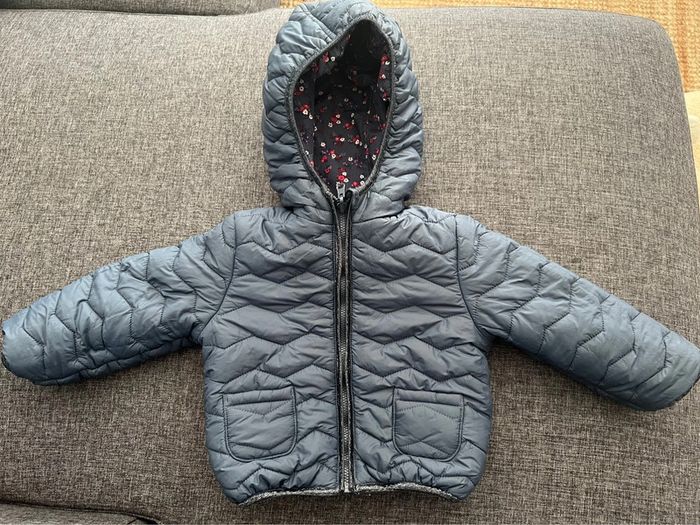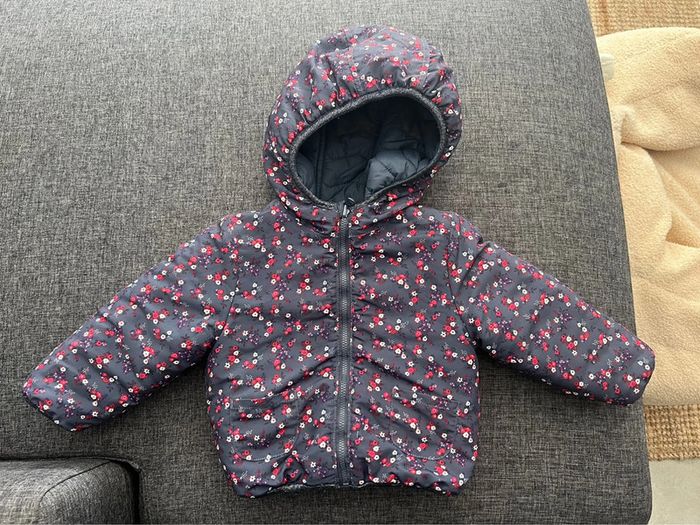 Doudoune bleu marine à fleurs réversible Taille 23mois 86cm Très bon état. Il y a juste le prénom Léa marqué sur l’étiquette, Étiquette qui se trouve dans la poche donc ne se voit pas #bebefille24moislauriem90