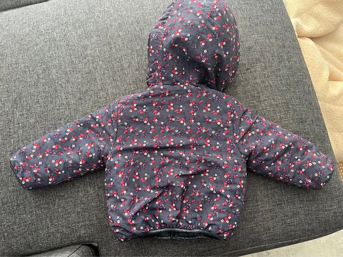 Doudoune réversible bleu marine à fleurs bébé fille 23mois 86cm TAO - photo numéro 3