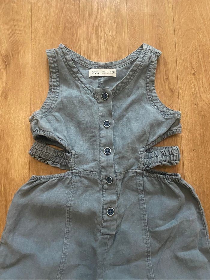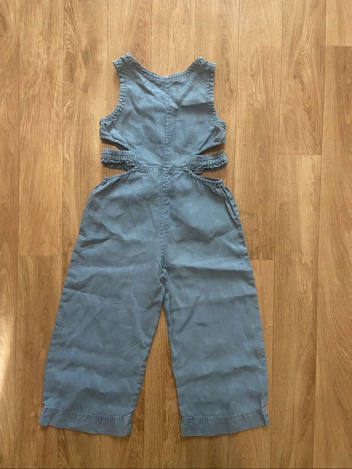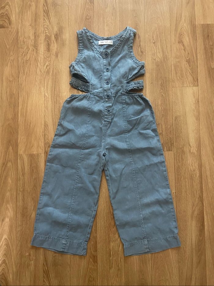 Combinaison ajourée à boutons Bleu Coton lin 6/7 ans