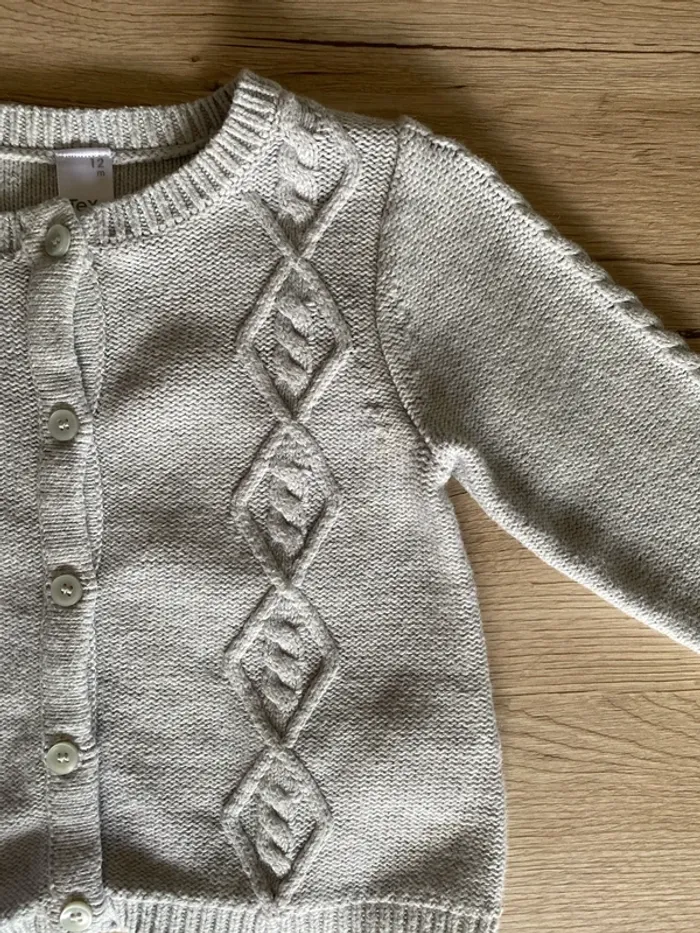 Gilet gris en maille torsade hiver bébé fille 12 mois Tex - photo numéro 1