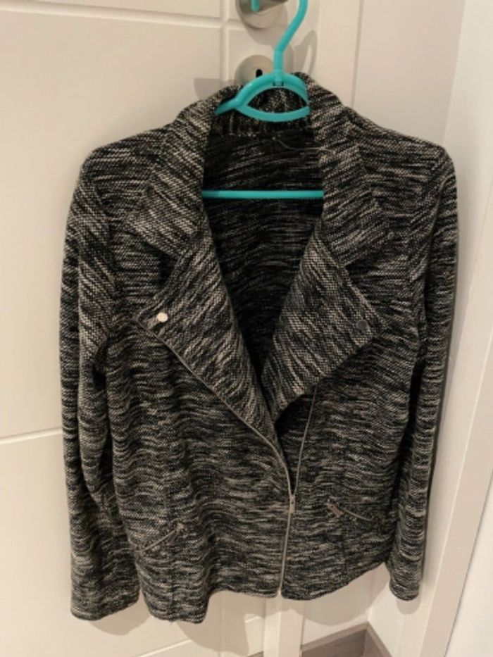 Veste femme taille L , en très bon état de couleur grise moucheté noire