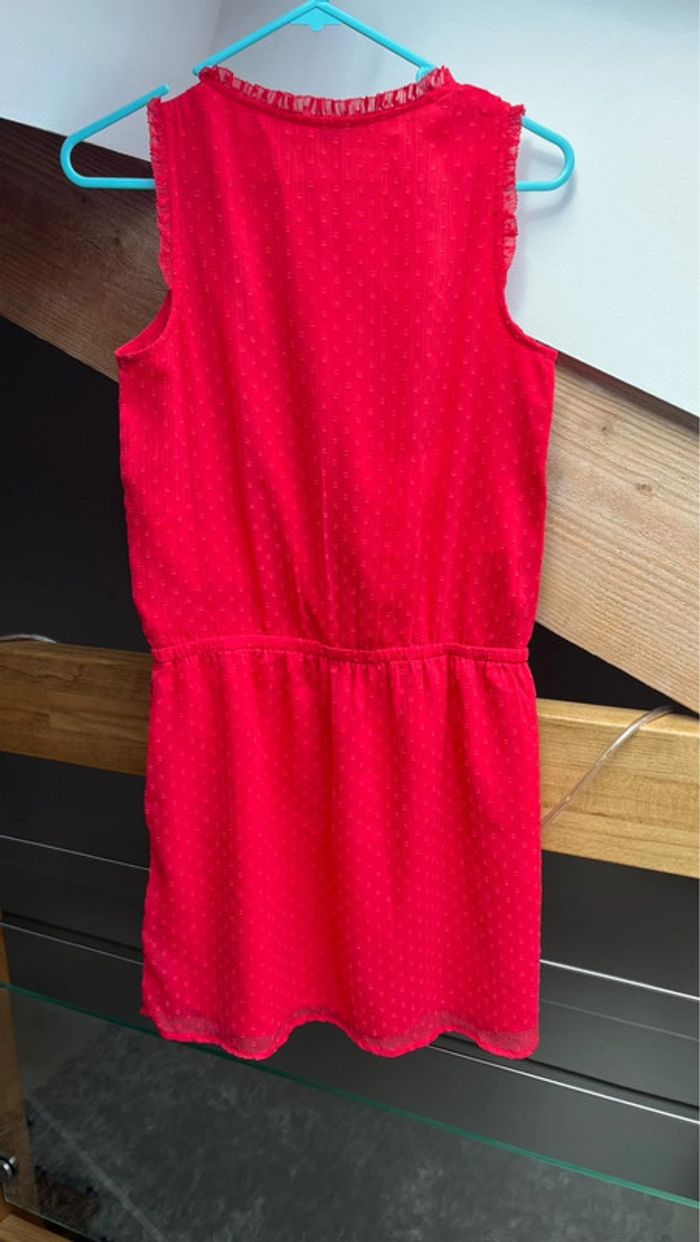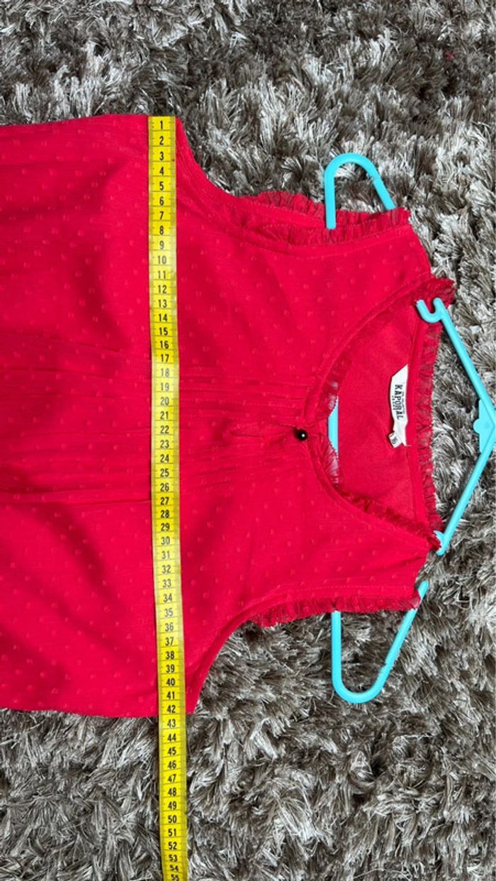 Robe fille Très légère et agréable à porter 16 ans mais taille plus 14 ans Mesures en photos Couleur rouge Manque 1 bouton fermoir devant mais ne gêne en rien Resserrée à la taille par un élastique N’hésitez pas à faire un lot pour bénéficier d’une réduction à partir de 3 articles Je rajoute également des articles en fonction du lot 😊 Bon shopping!!🛍️