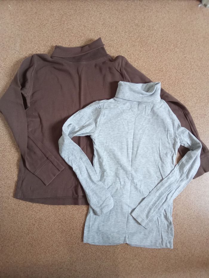 Lot de 2 pulls col roulé manche longues, un marron et un gris plus léger. Bon état général Beaucoup d'autres vts garçon mm taille également à vendre ds mon dressing et réduction activée