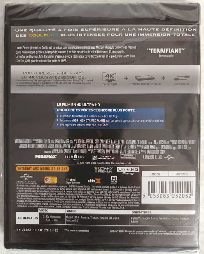 HALLOWEEN 4K ULTRA HD BLURAY NEUF Scellé