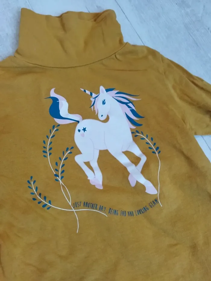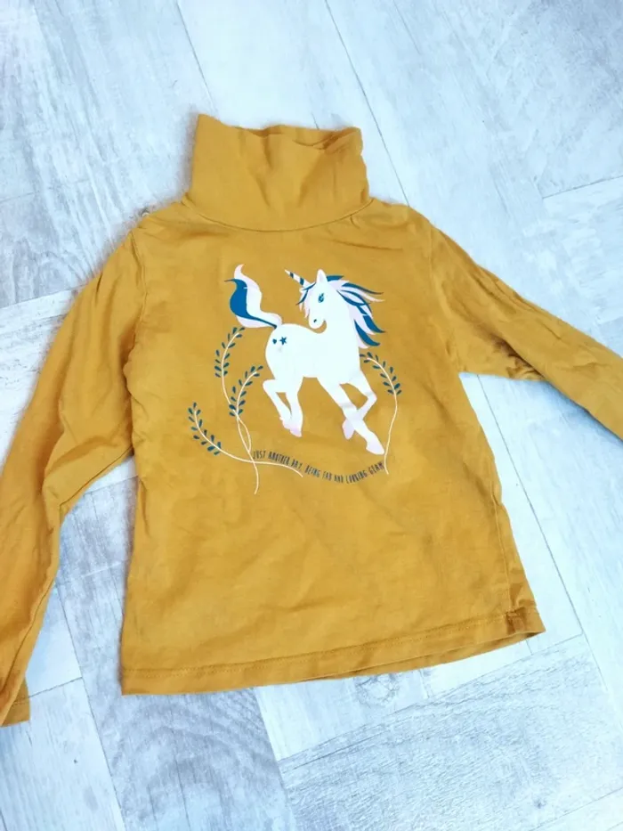 T-shirt manches longues col roulé licorne 4 ans - photo numéro 1