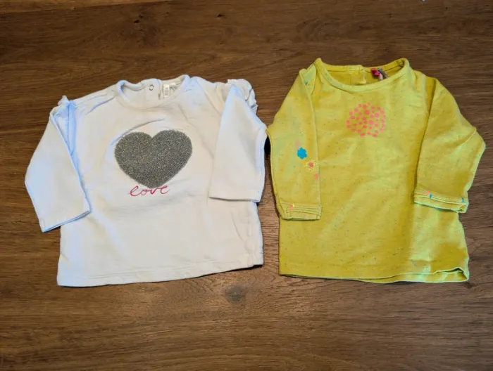 2 tee-shirts à manches longues, Orchestra, 6 mois. En très bon état.