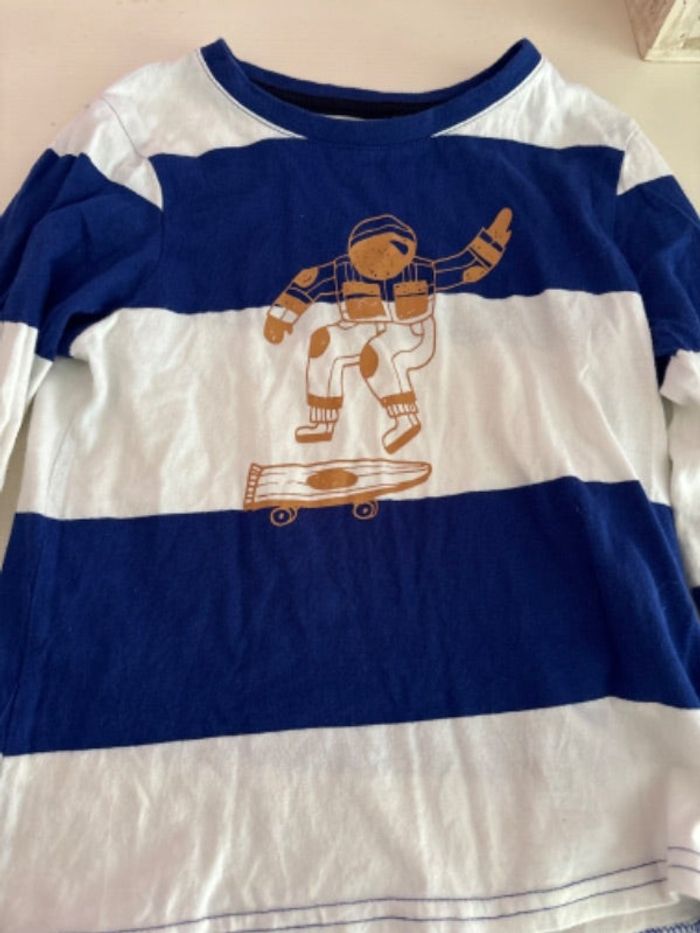 Pull garçon, de couleur blanc et bleu, taille six ans