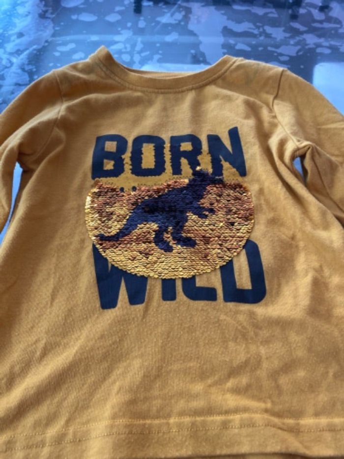 Pull garçon de couleur, moutarde petite tache, mais rien de méchant