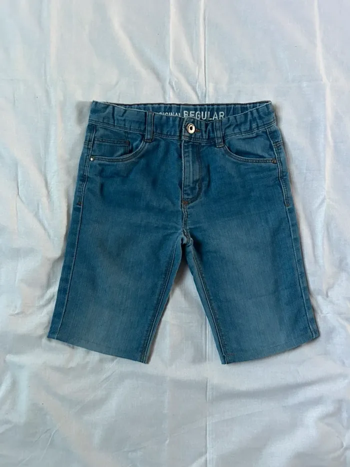 Bermuda en jean regular bleu, peut être resserrer à la taille, de la marque Tape à l’œil (TAO) Taille 10 ans Très bon état #sabiide35garçontaille10ans