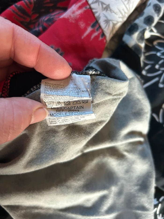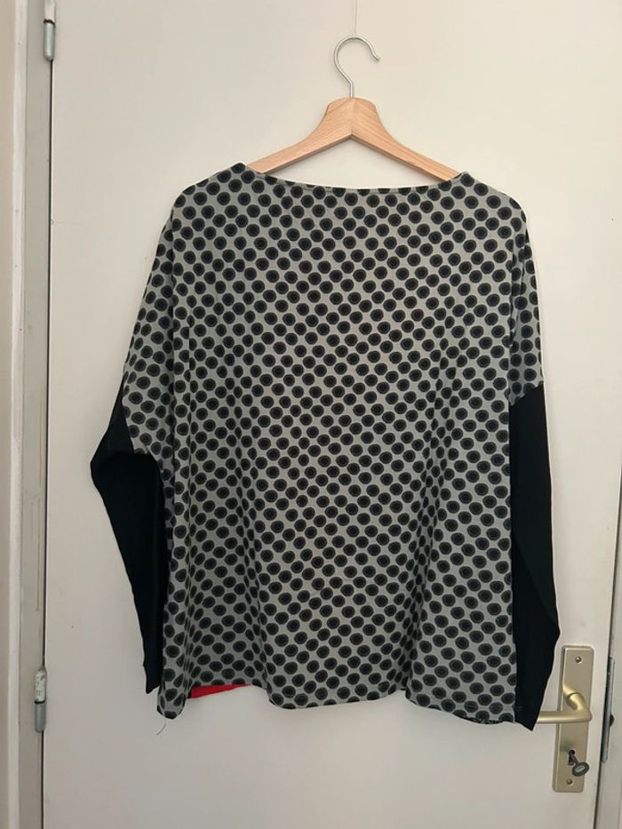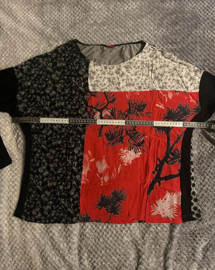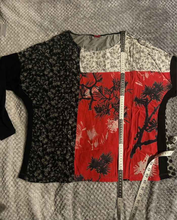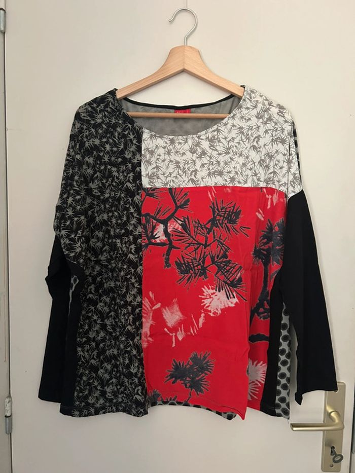 Tunique manches longues avec empiècements japonisant, couleurs noir, rouge, gris et blanc, de la marque Miss Captain Matières coton, élasthanne et viscose Dimensions aisselles à aisselles : ~ 67cm Dimensions de la longueur : ~ 64cm Taille 4 (équivaut 46-48 en taille française) Bon état (porté plusieurs fois) #sabiide35femmetaille48 #sabiide35femmetaille46