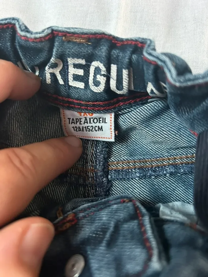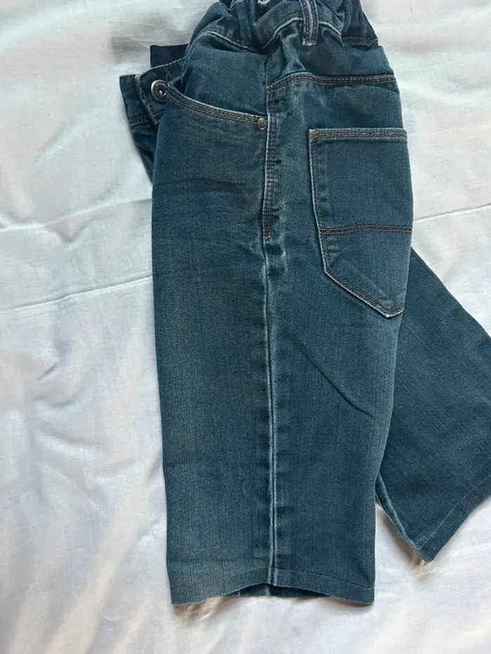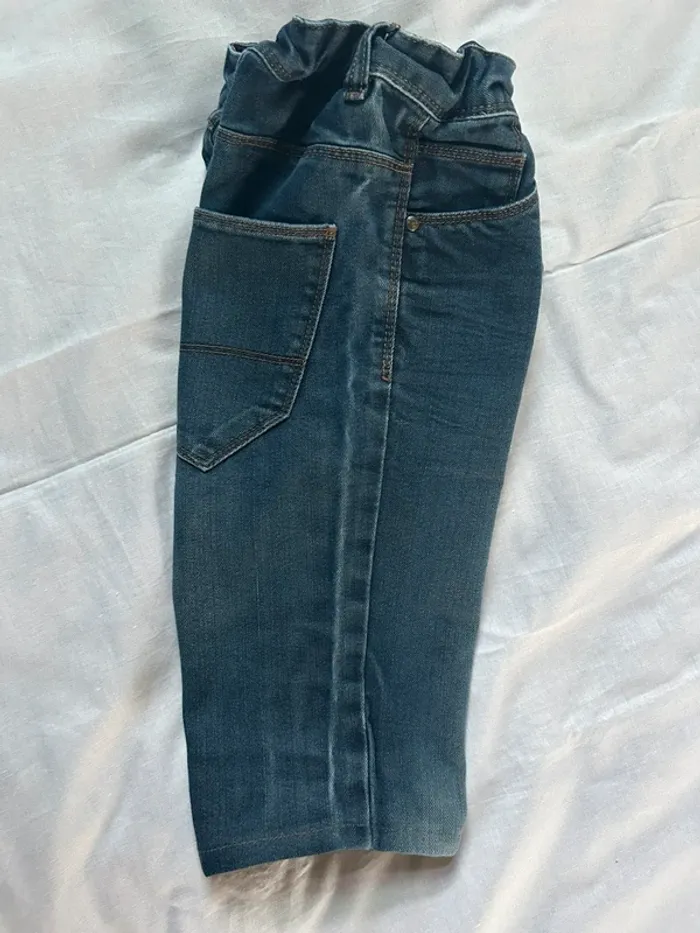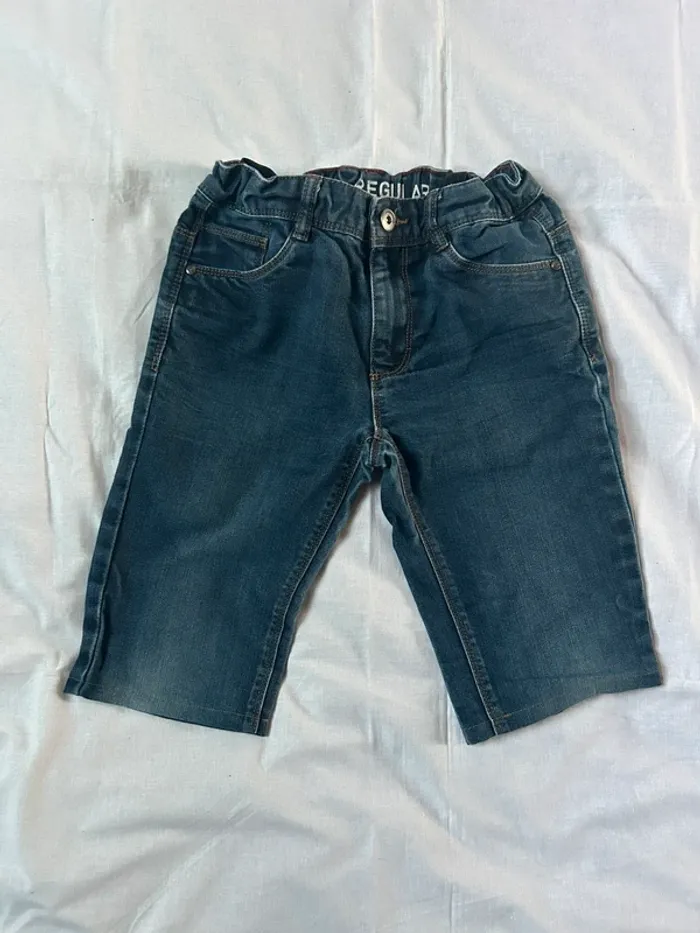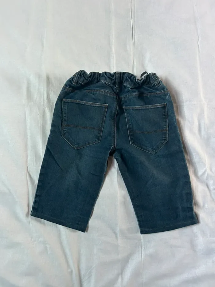 Bermuda en jean bleu foncé, de la marque Tape à l’œil Taille 12 ans Très bon état (sauf trace de décoloration de teinture avec le lavage sur les côtés, cf photos) #sabiide35garçontaille12ans