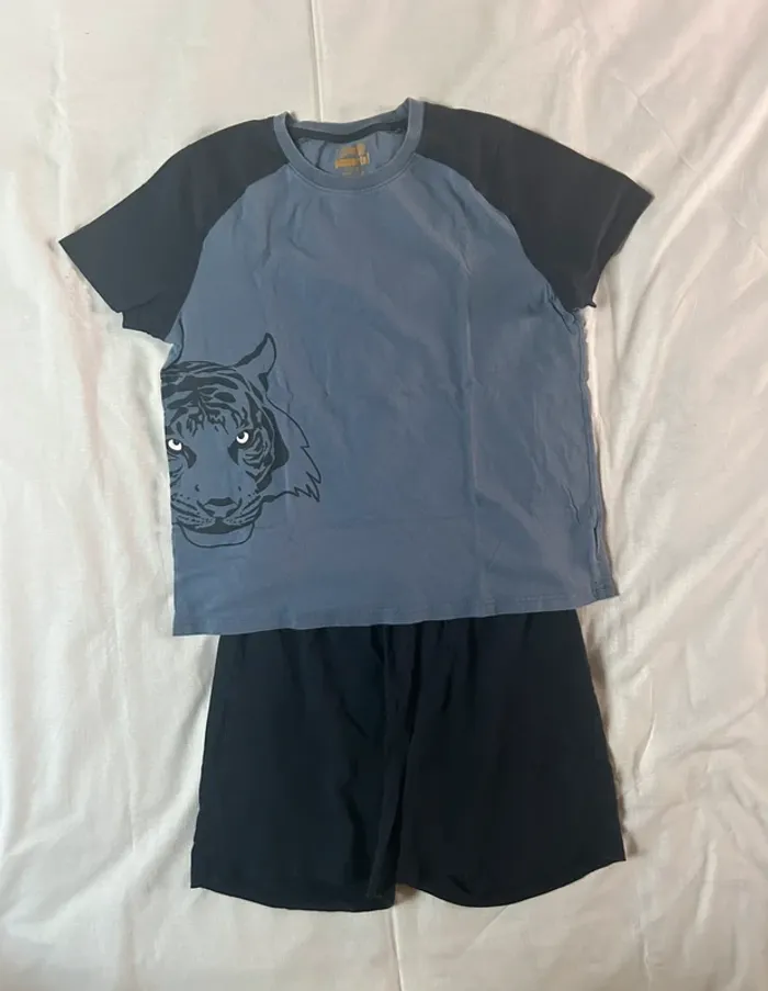 Pyjashort avec motif tête de tigre 🐯, couleurs bleu marine et bleu plus clair, de Lamarque Pepperts! Taille 12-14 ans Très bon état #sabiide35garçontaille12ans #sabiide35garçontaille14ans