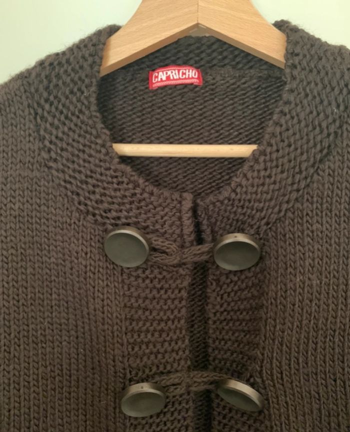 Gilet Croc Top à grosses mailles, couleur marron foncé, de la marque Capricho Composition 70% acrylique et 30% laine Made in France 🇫🇷 Equivaut à une taille 38 Très bon état #sabiide35femmetaille38