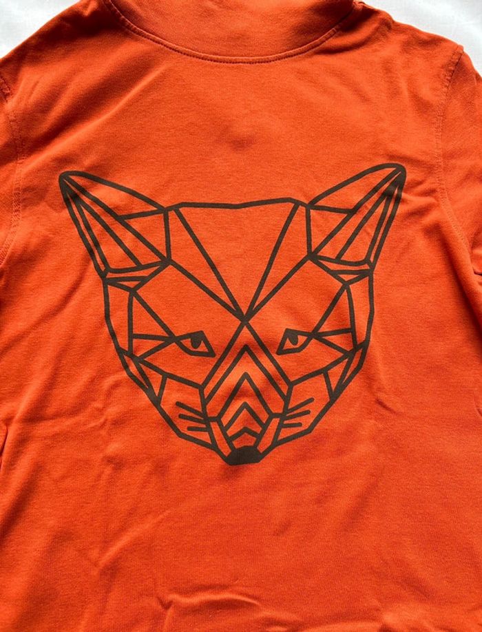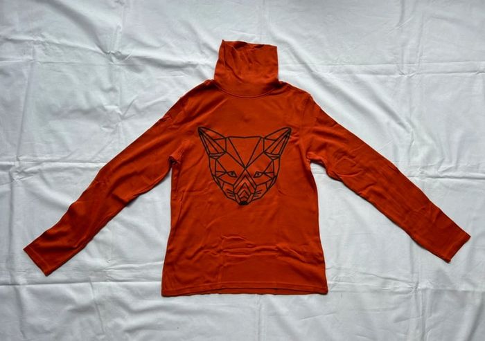 T-shirt ML à col roulé, couleurs orange et noir, avec motif géométrique « tête de renard 🦊 », de la marque Du pareil au même Taille 12 ans Très bon état #sabiide35garçontaille12ans