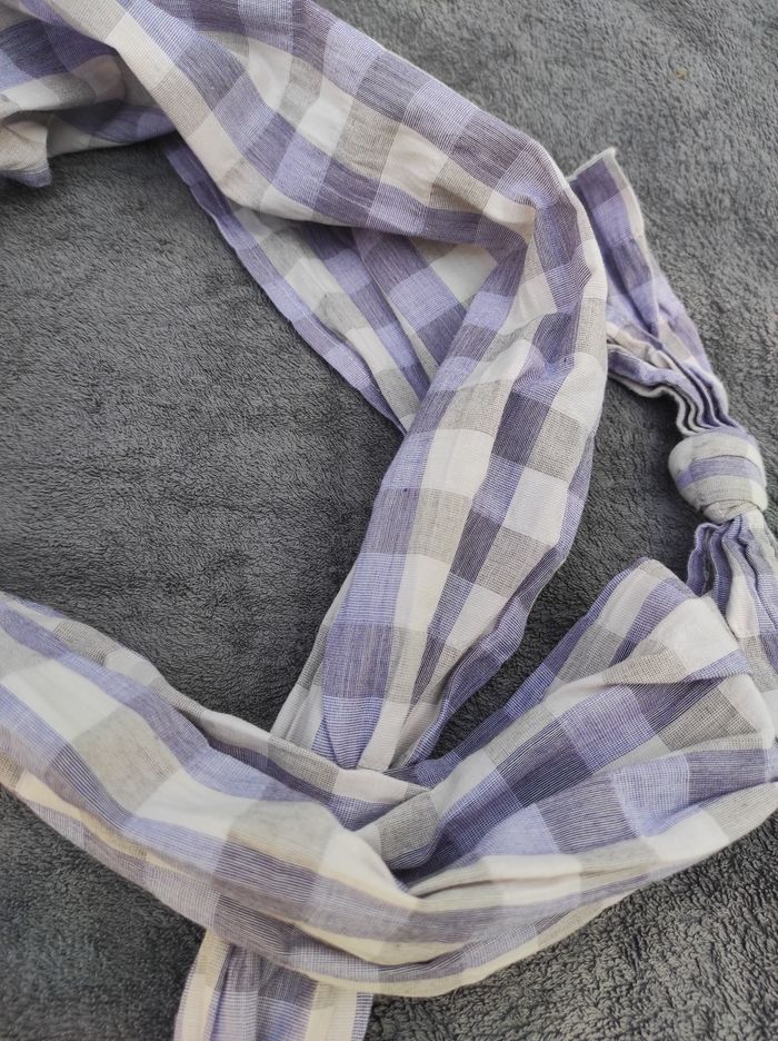 Très joli foulard a carreaux violet tendre et blanc d'une boutique indépendante comme neuf