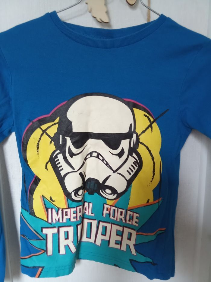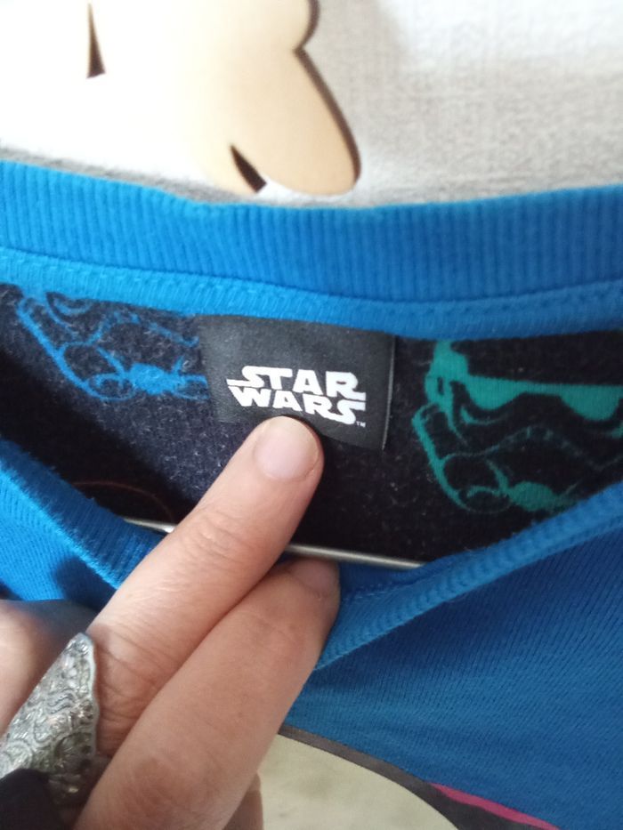 Pull manche longue motif star wars en 7-8 ans. De légères traces d'utilisation sur le flocage. Bon état général Beaucoup d'autres vts garçon mm taille également à vendre ds mon dressing et réduction activée