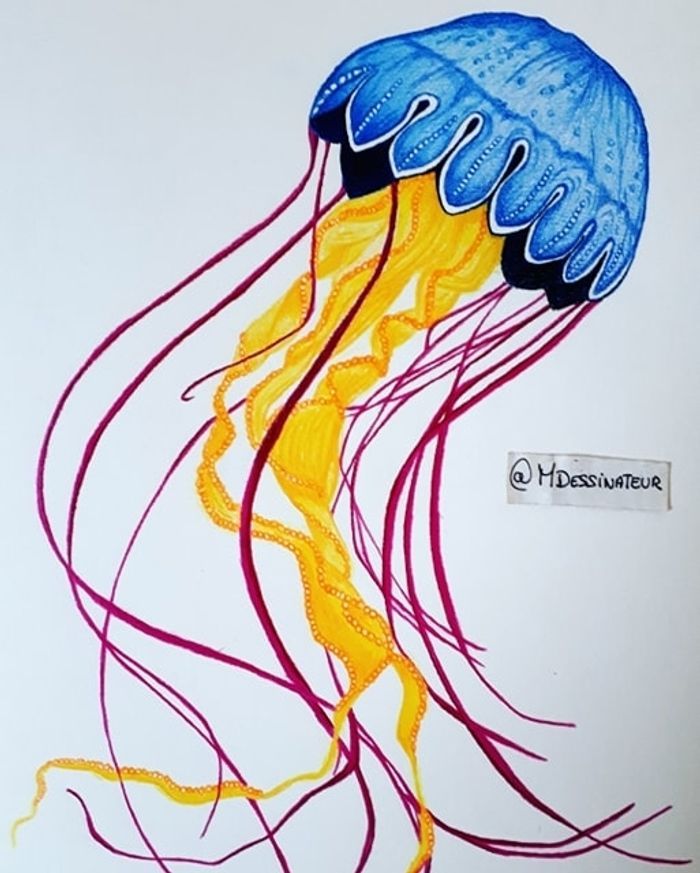 Dessin d'une Méduse Format A4 Cadeau idéal pour un fan de cet animal Sans cadre