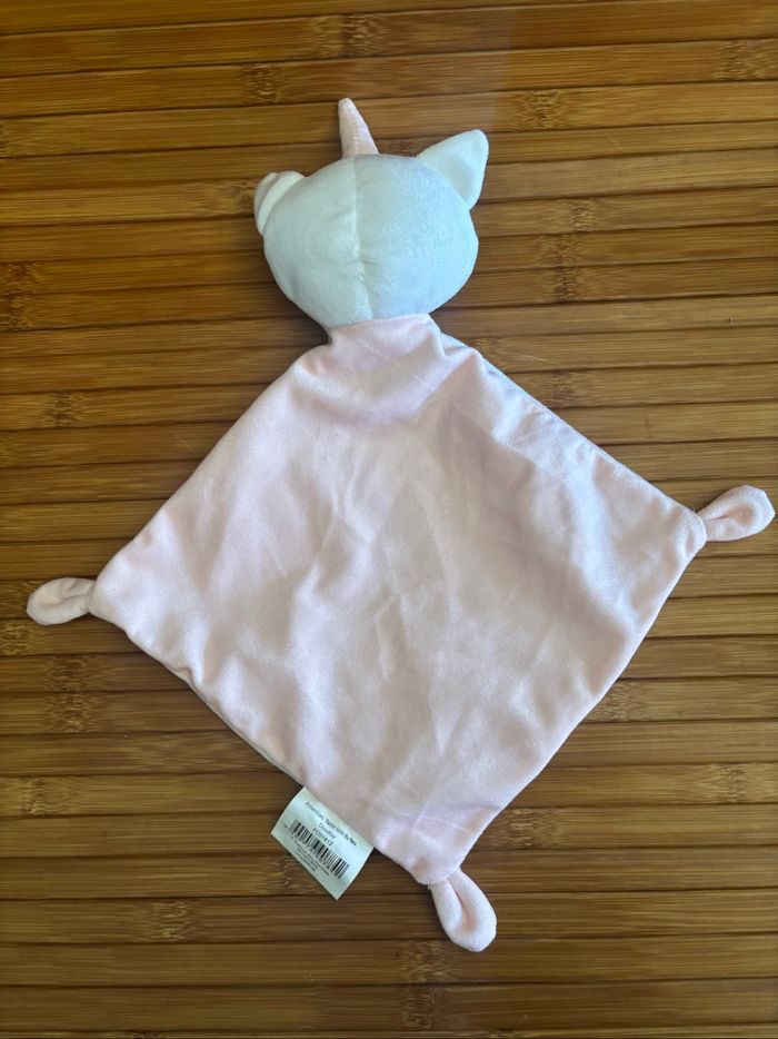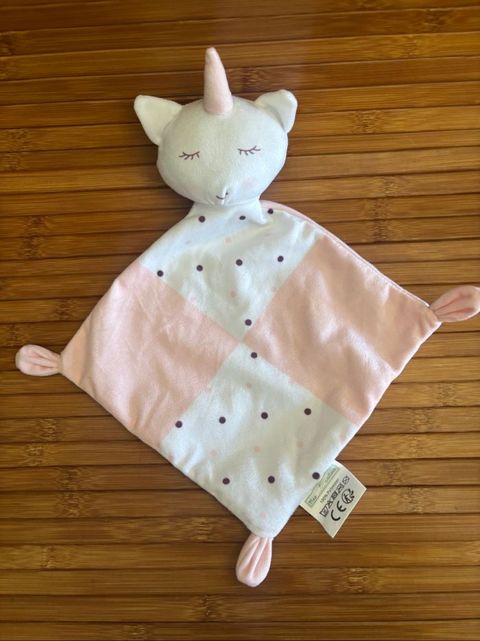 Doudou plat licorne rose blanc pois mes petits cailloux