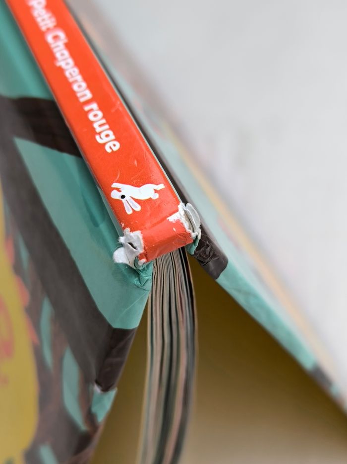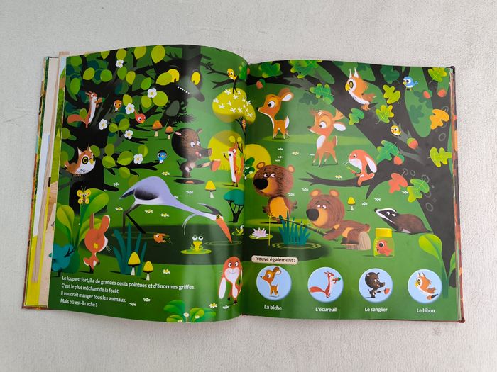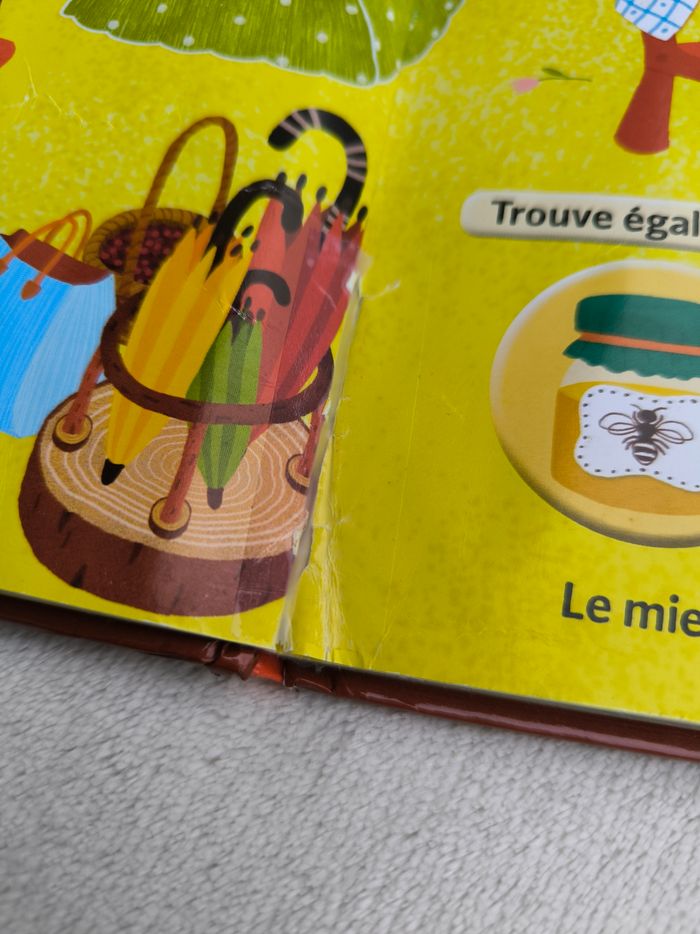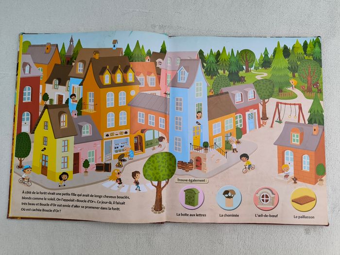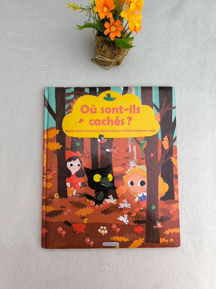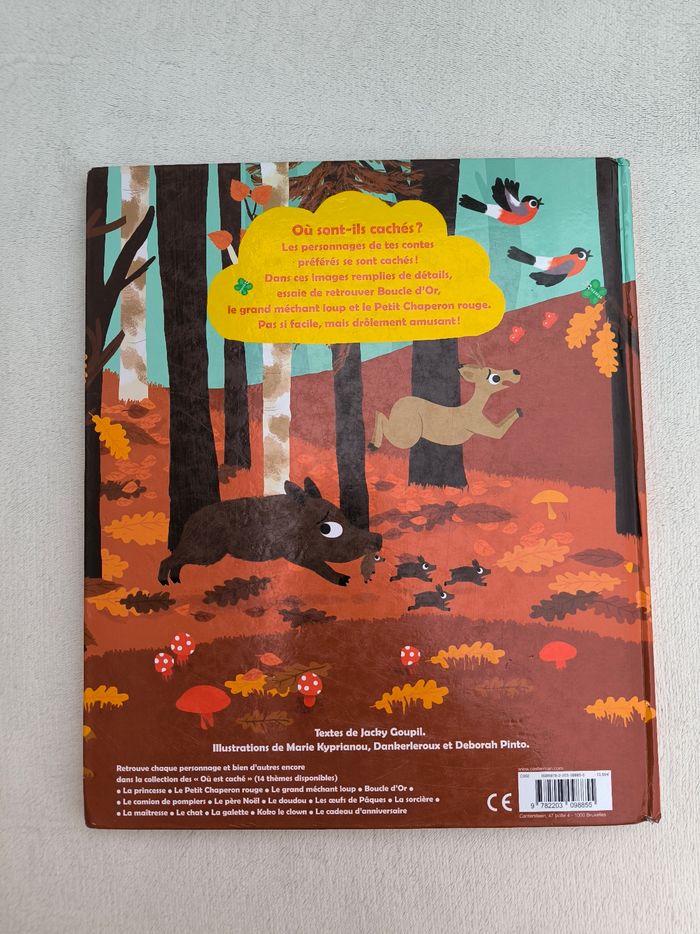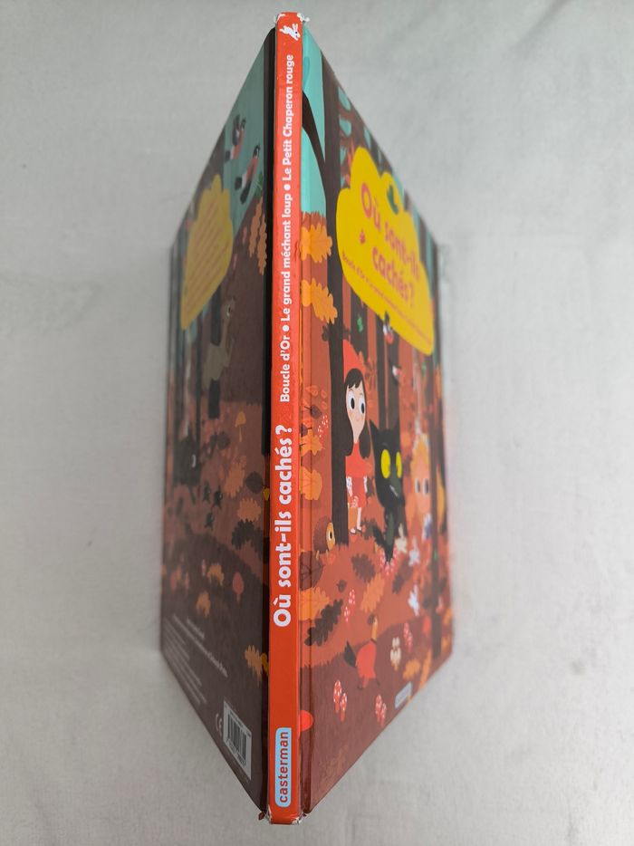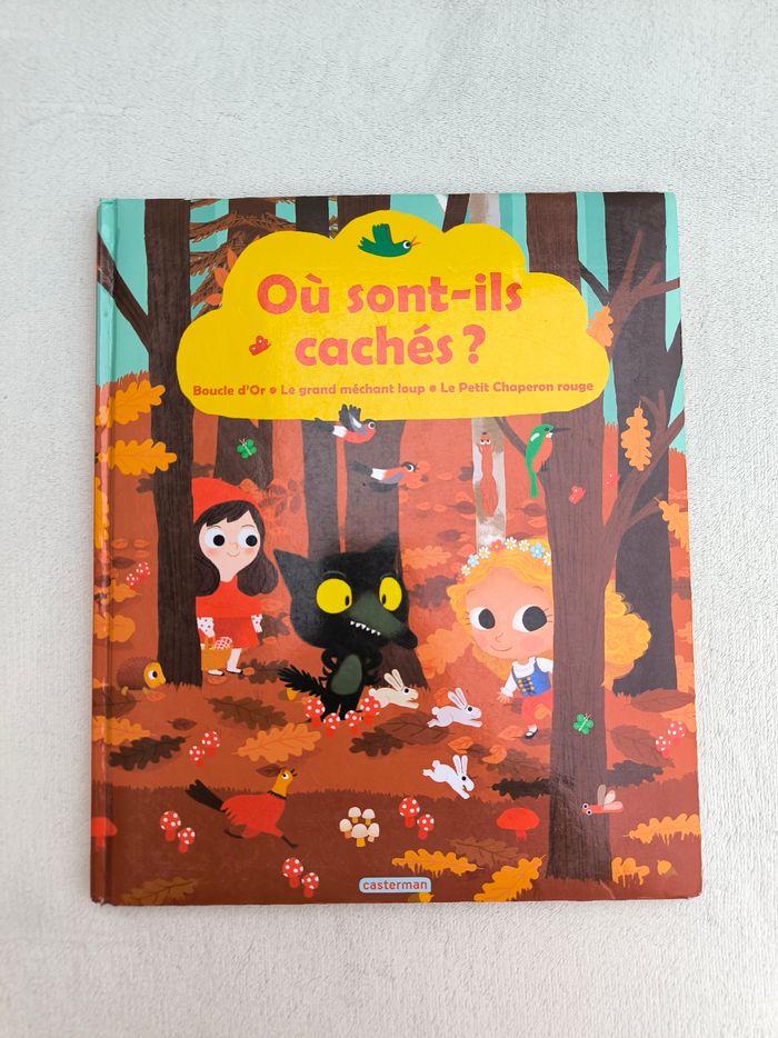 Livre Cherche et trouve des contes : Où sont-ils cachés ? Éditions Casterman • Histoires -> Boucle d'Or -> Le grand méchant loup -> Le Petit chaperon rouge • Une page scotchée • Coins abîmés En bon état #evelyne_livres