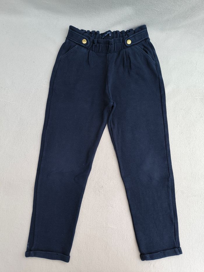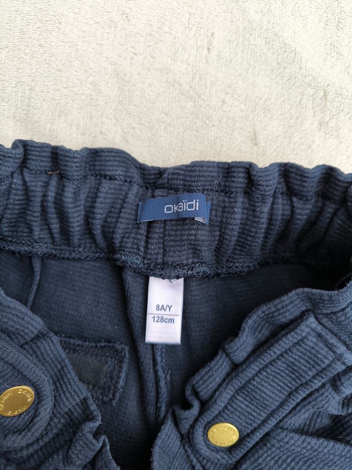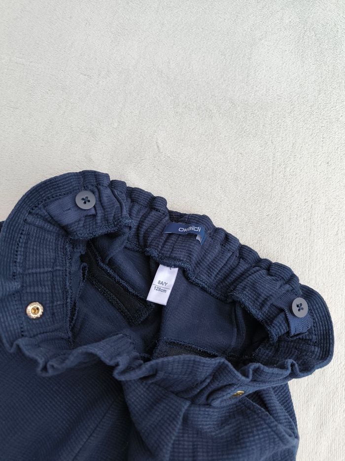 Pantalon Marque Okaïdi Taille 8 ans, 128 cm • Coloris marine • Taille élastique ajustable, détails • 2 poches • Revers bas des jambes • Tissu gaufré En très bon état #evelyne_filles_8ans #evelyne_filles