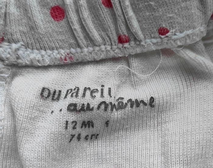Pyjama 2 pièces blanc à pois rose en bon état de la marque Du Pareil Au Même pour fille taille 12 mois/ 1 ans