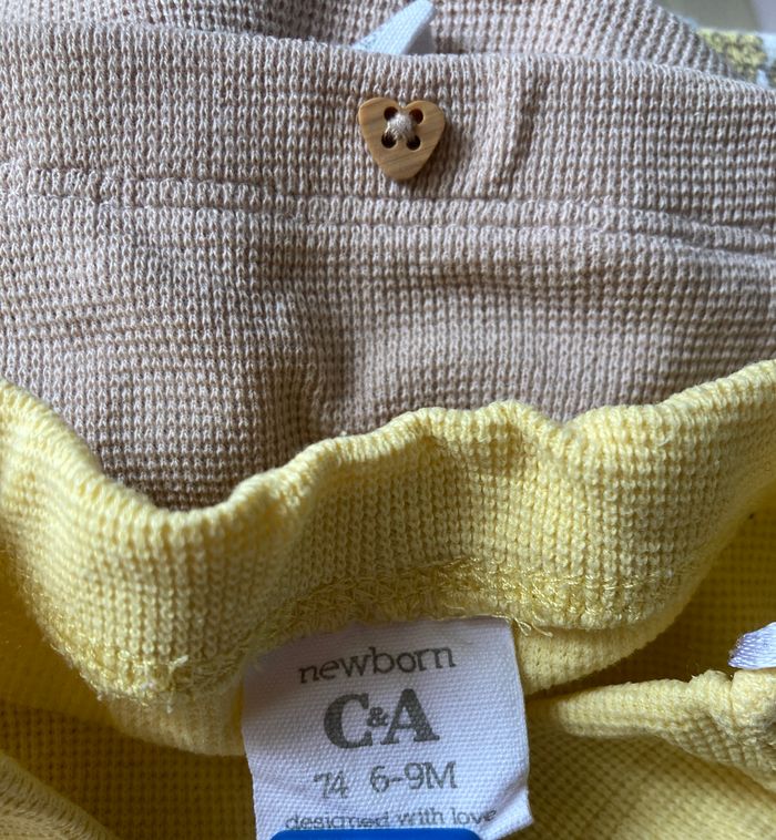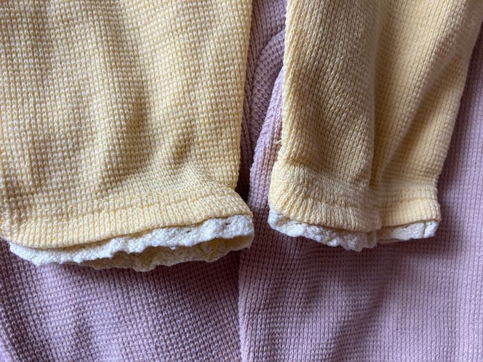 taille 74 cm, 6/9 mois 1 motif fleuri, 1 beige, 1 jaune petite bande dentelle en crochet