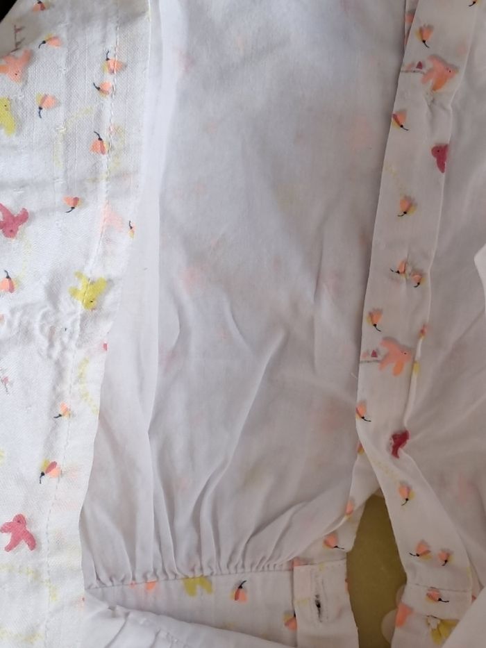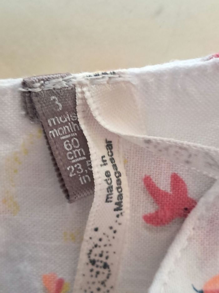 Robe blanche doublée à motif et broderie. 3 mois. 60cm Voir photo pour les matières Pour information, je vends les vêtements de la famille, amies et enfants toutes tailles et saisons Jouets, doudous, peluches etc.... Je vais mettre des vêtements 1 à 12 mois fille née en juillet 2024