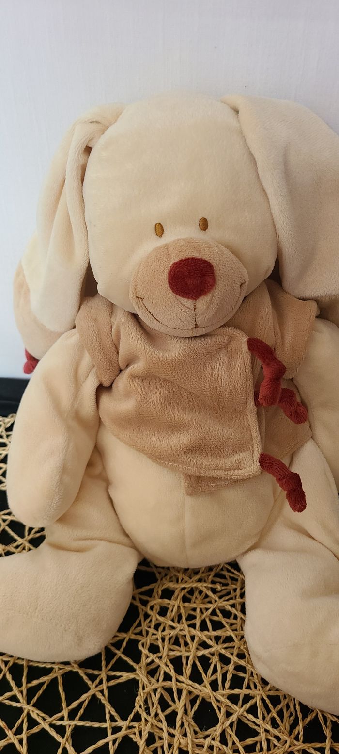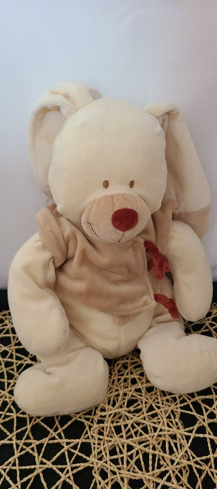 Peluche lapin NICOTOY Bastien veste marron bordeaux visage souriant - photo numéro 1