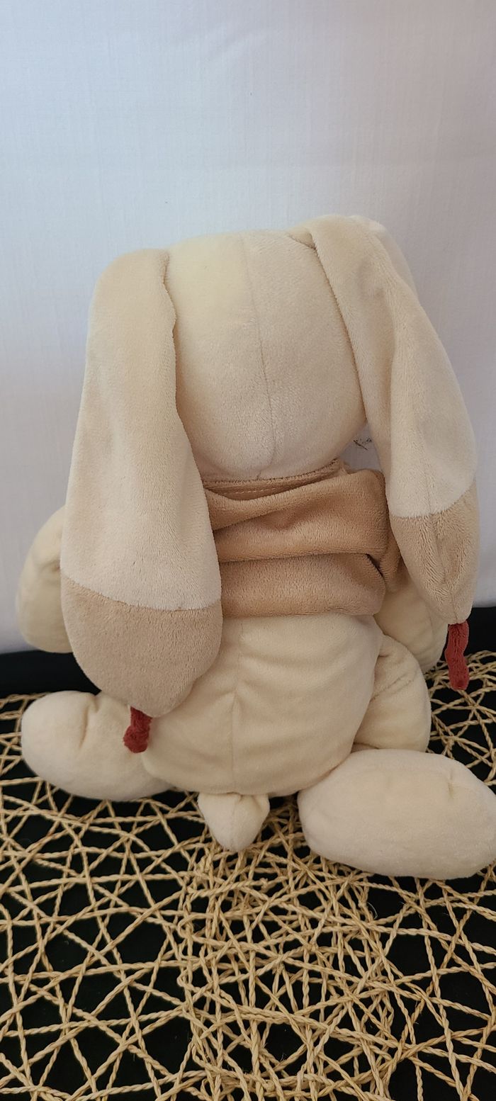 Peluche lapin NICOTOY Bastien veste marron bordeaux visage souriant 20