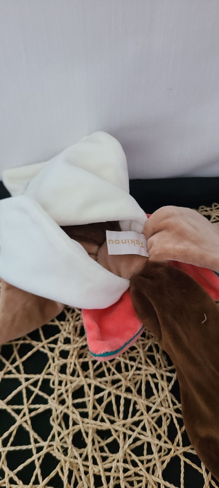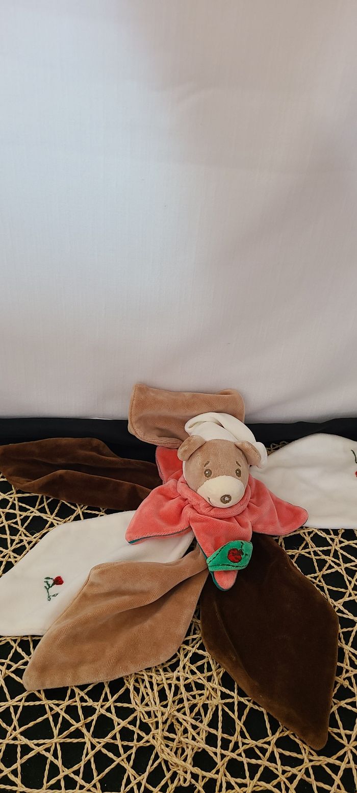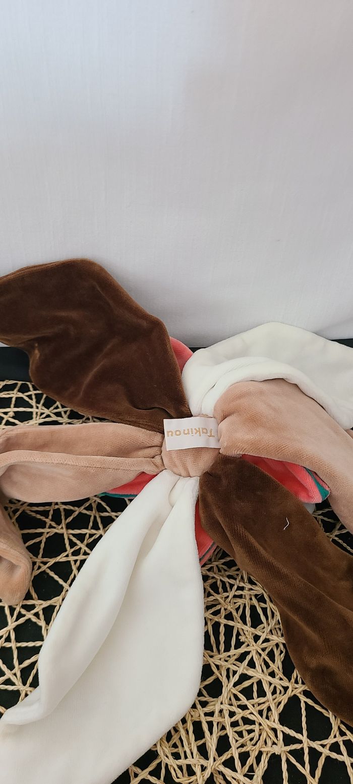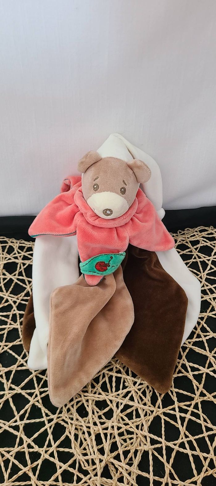 Doudou plat fleur pétale ours marron blanc rouge TAKINOU - photo numéro 5