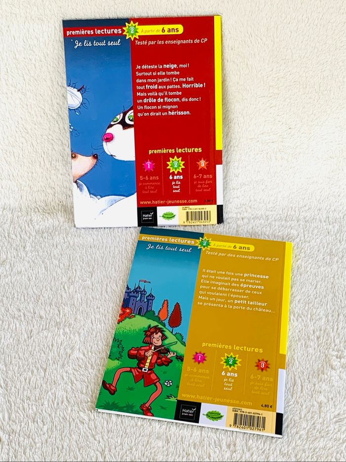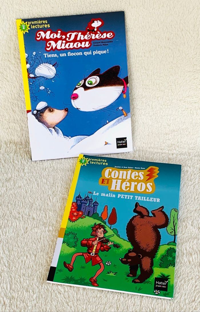 Lot 2 livres Premières Lectures 6 ans dimensions 14,2 x 19 x 0,4cm Editions Hatier Jeunesse - N°4 « Contes et Héros, le malin petit tailleur ». De Jeanine et Jean Guion - Buster Bone - N°7 « Moi, Thérèse Miaou . Tiens, un flocon qui pique». De Gérard Moncomble Frédéric Pillot *Traces d'usure, très bon état ⛔️ Prix FIXES, NON négociables 🚨  👏🏻 Réductions sur les lots 👍🏻 #premiereslectures #hatierjeunesse #des6ans #livres #cc_divers