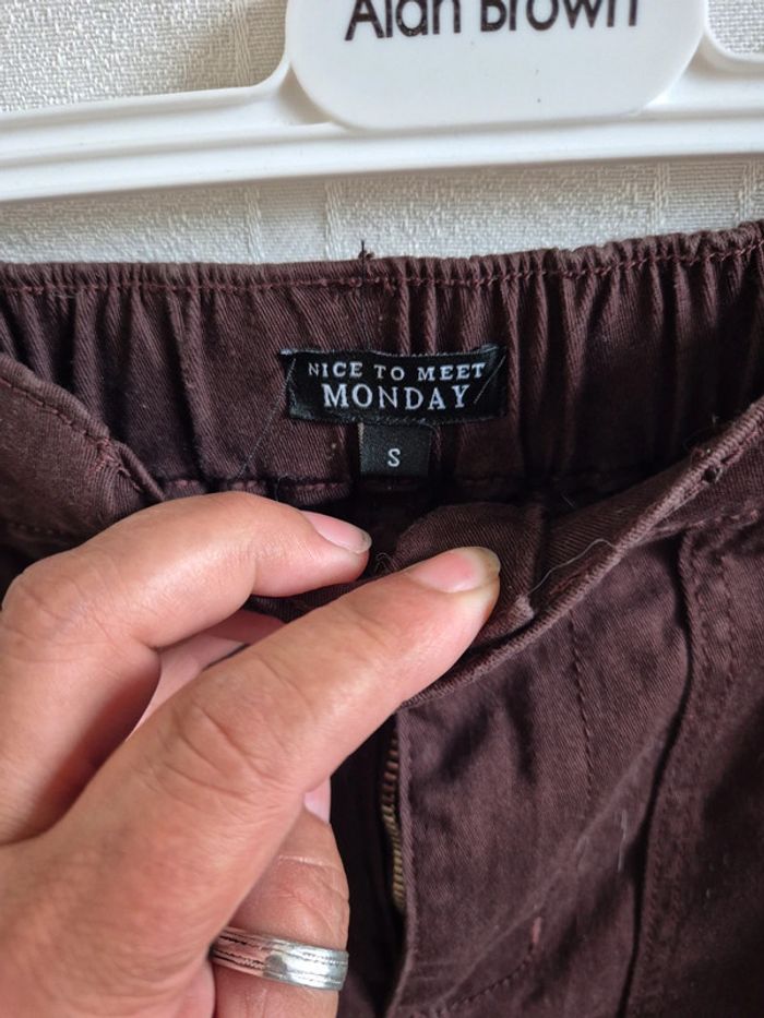 ⬇️mes autres annonces pour femme en taille 36 👉 #cg89femme36 un pantalon cargo marron, il mesure 93 cm de longueur et 69 cm à l'entrejambe. très bon état - taille 36 - marque nice to meet monday #pantalon #cargo #jean