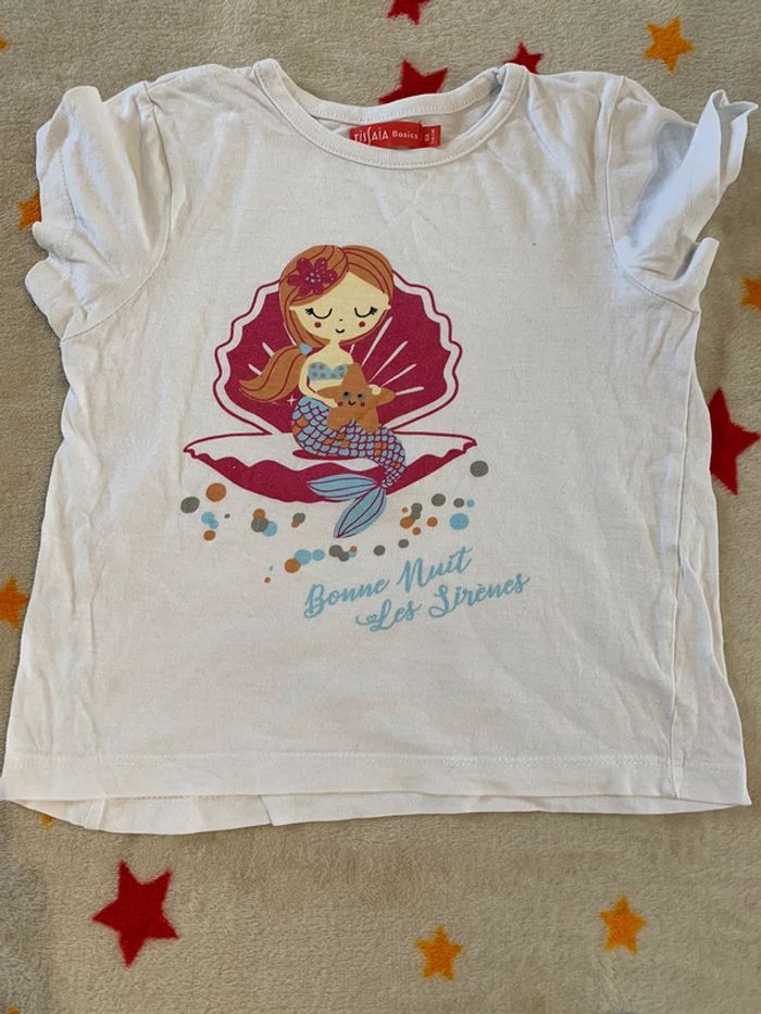 Col rond Manches courtes Bonne nuit les sirènes Motif sirène 🧜‍♀️ dormant dans un coquillage 🐚 Étoile de mer Short taille élastique Veuillez consulter mes autres articles, je fais un grand tri! #5ABFL14 Tous mes # dans mon profil