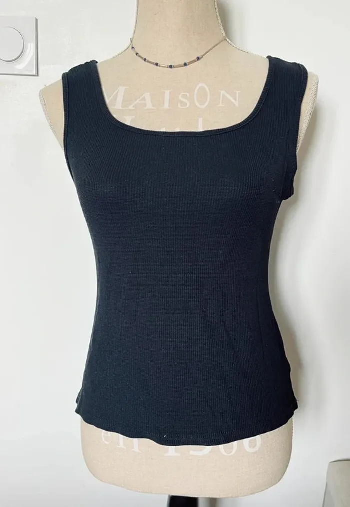 💕 débardeur noir côtelé quadrillé taille 38 #puretesimple - photo numéro 1