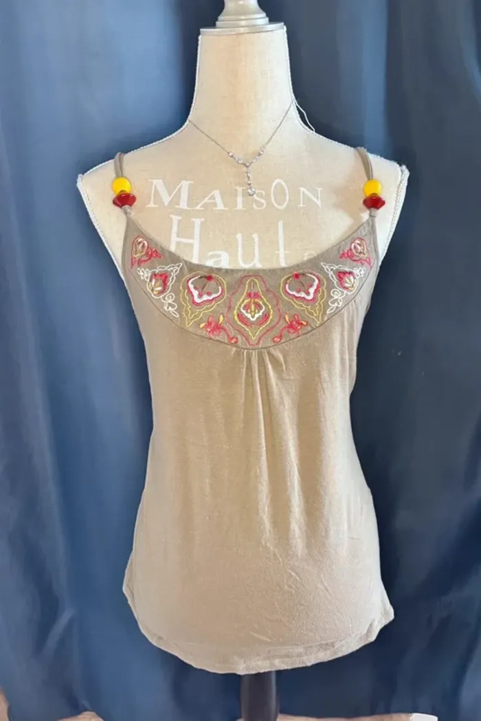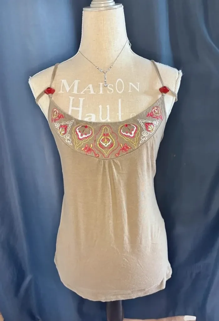🌸 top kaki double bretelles avec perles taille xl 42 #camaieu
