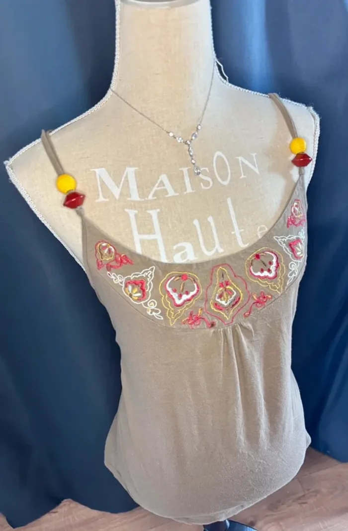 🌸  top kaki double bretelles avec perles taille xl 42 #camaieu