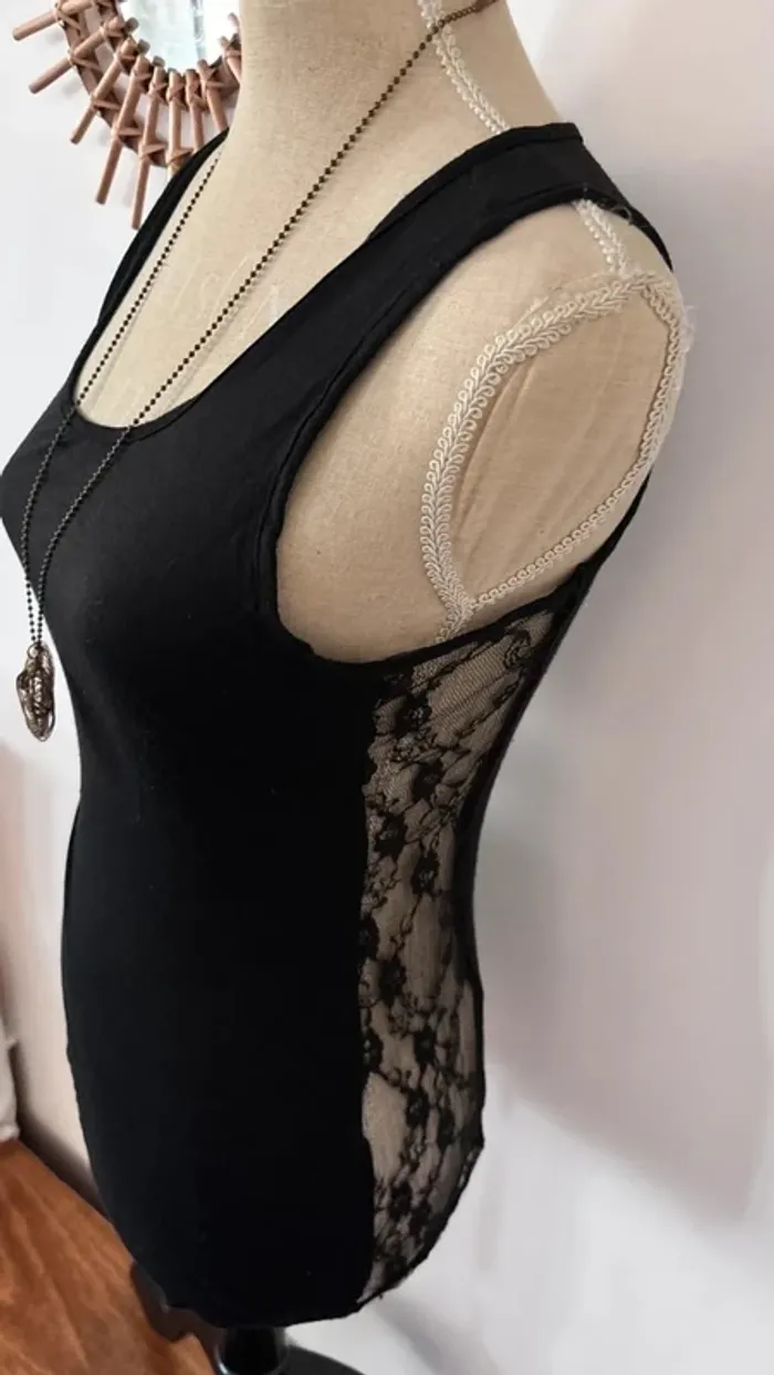 🎽 débardeur noir avec dentelle sur le coté taille M 38 #toumai