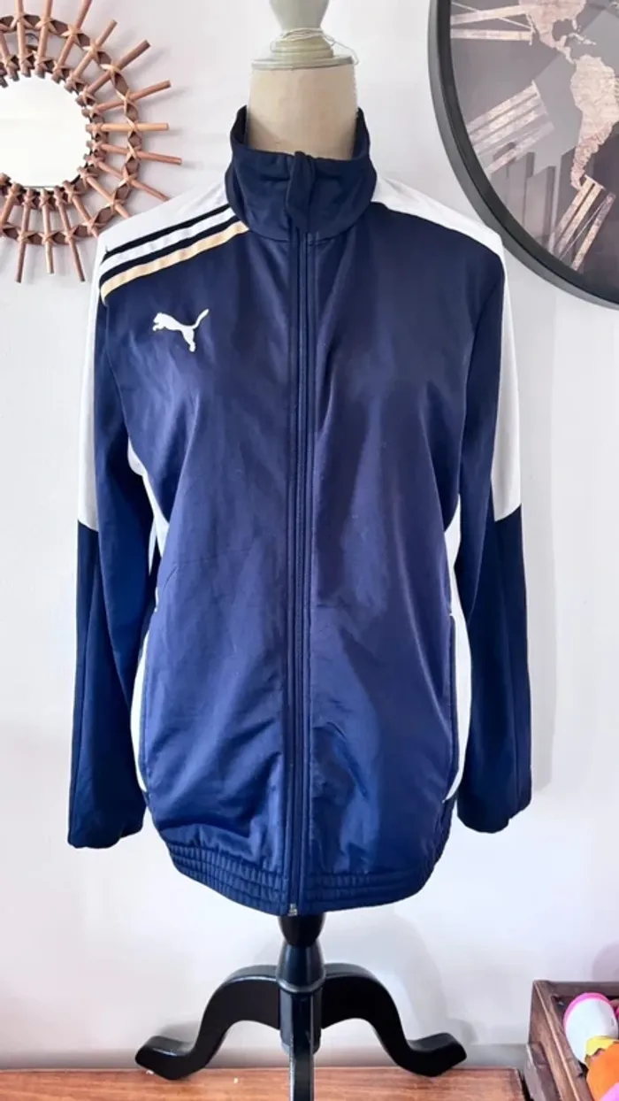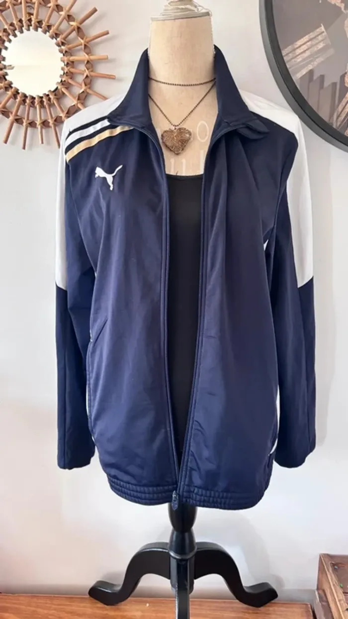 Veste a capuche zip bleue marine rayée blanche taille 38 M #puma - photo numéro 1