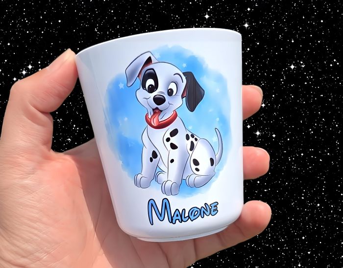 Verre d'école personnalisé Thème dalmatien Autre Thème dispo prénom de votre choix Passe au lave vaisselle Envoi rapide